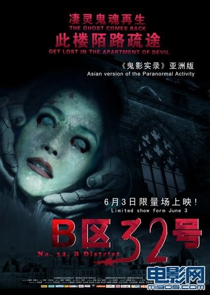 2011国内首部伪记录恐怖片《B区32号》继之间两款不同风格海报推出之后,再次推出电影第三款正式海报。