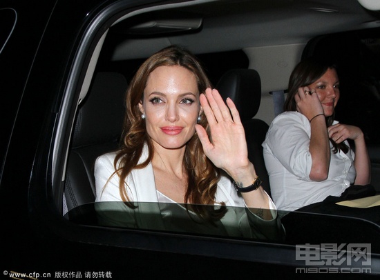 朱莉助阵国际妇女首脑会议 白色西装变身性感OL