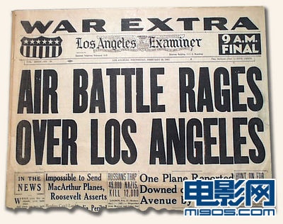 说起影片《洛杉矶之战》片名的来历,很多人可能不会知道,“洛杉矶之战”或者叫做“洛杉矶大空袭”(The Great Los AngelesAir Raid)是在历史上真正发生过的一次疑似UFO事件。