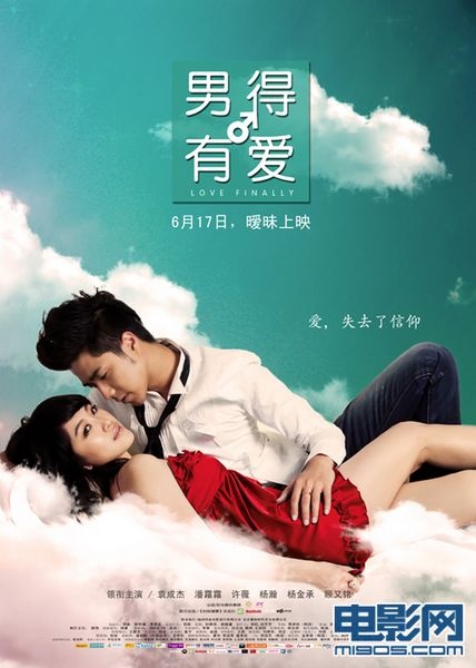 《男得有爱》这款新海报以蓝绿色为基底,整个画面清新自然,而且梦幻浪漫。海报中,白衬衣黑领带的袁成杰显得帅气阳光,深情俯望身下的许薇。许薇则一身俏丽的红色晚装短裙躺在云端之上。电影中相恋的二人此刻停格在最为美妙的瞬间,令人对爱情产生无限的向往和憧憬。画面唯美浪漫,充满迷幻气息,演绎出恋人间“此时无声胜有声”的恬静与浪漫。据悉,为了从各种角度拍摄到完美的一面,这次拍摄时间长达2小时,看似唯美的画面,袁成杰和许薇可谓不厌其烦地尝试各种pose。