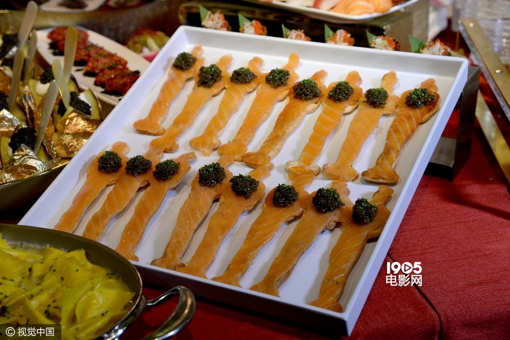 美国好莱坞,近日第89届奥斯卡现场装饰及美食曝光,小金人变甜品人手一个。