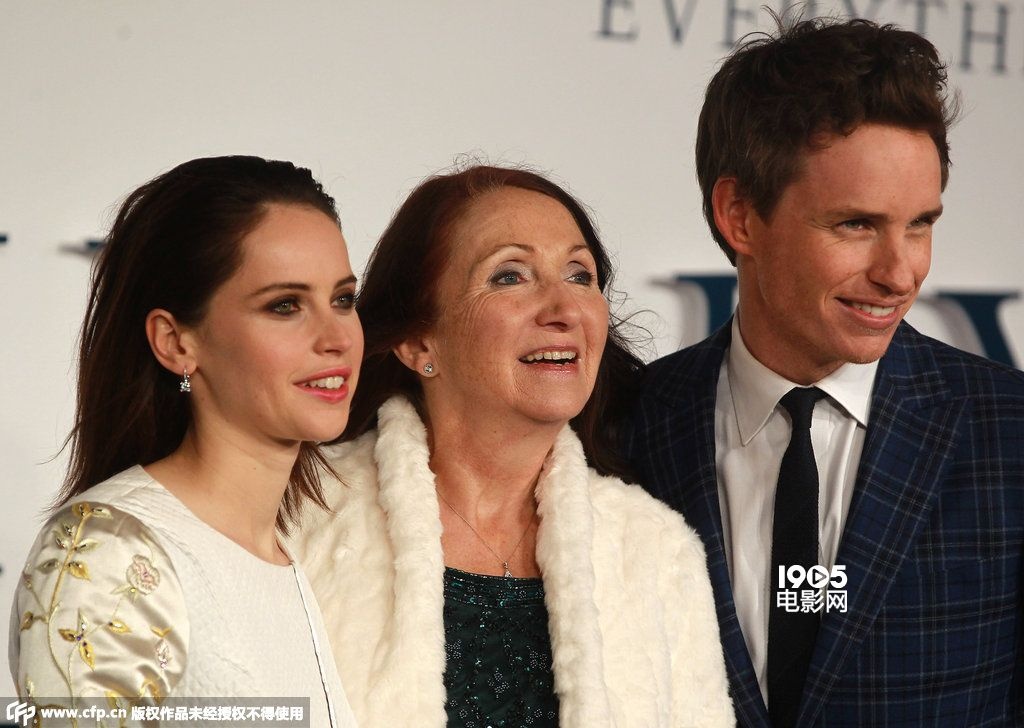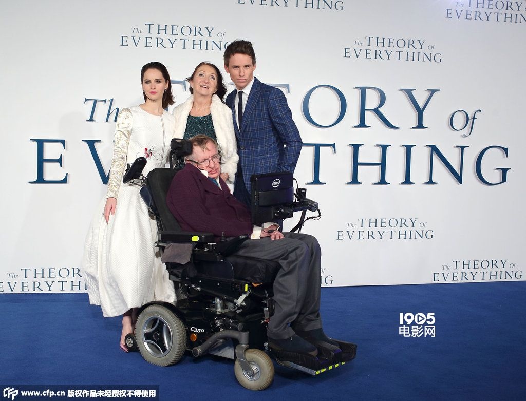 1905电影网讯 当地时间12月9日,伦敦,电影《万物理论》首映礼。主演埃迪·雷德梅恩、菲丽希缇·琼斯出席。值得一提的是,该片原型斯蒂芬·霍金博士与第一任妻子简·王尔德也与主演一同现身,成为现场的焦点。