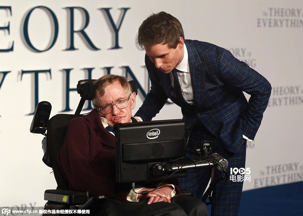 此次伦敦首映礼上,主演与原型一同现身,着实令人感动。其实,这也不是霍金与扮演他的埃迪的首次见面。在电影开拍前几天,霍金表示愿意在剑桥见见这位演员,而这次见面,让原本非常焦虑的埃迪镇静了一些,他之前对霍金的直觉性理解,以及为扮演这个角色所做的准备都非常正确。