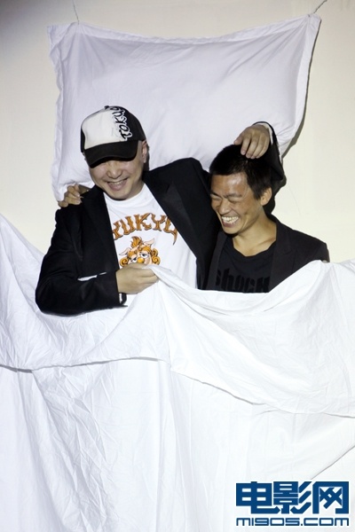 电影网讯(图/杨雅如 文/张玮) 白色的床单和枕头,两个男人依偎在一起,这样的情景乍看上去令人不免疑惑,5月28日,在电影《人在囧途》的首映礼上,徐峥和王宝强现场还原了片中最为人称道的一段床戏,两人靠在白色的背板上,躲在床单里,演绎得十分逼真。导演叶伟民,监制文隽携主演徐峥、王宝强、张歆艺、张超等到场,张扬、梁静、张国强、商忆沙等人也前来祝贺,影片将于6月4日上映。