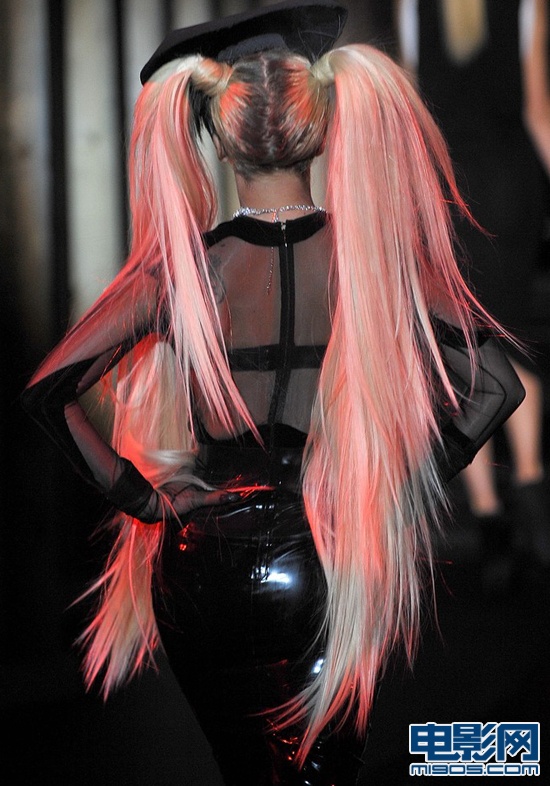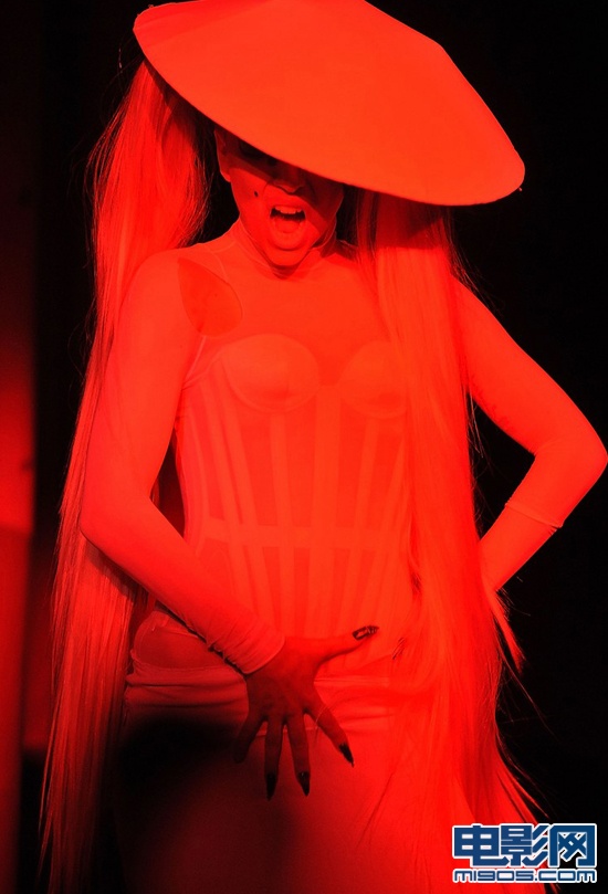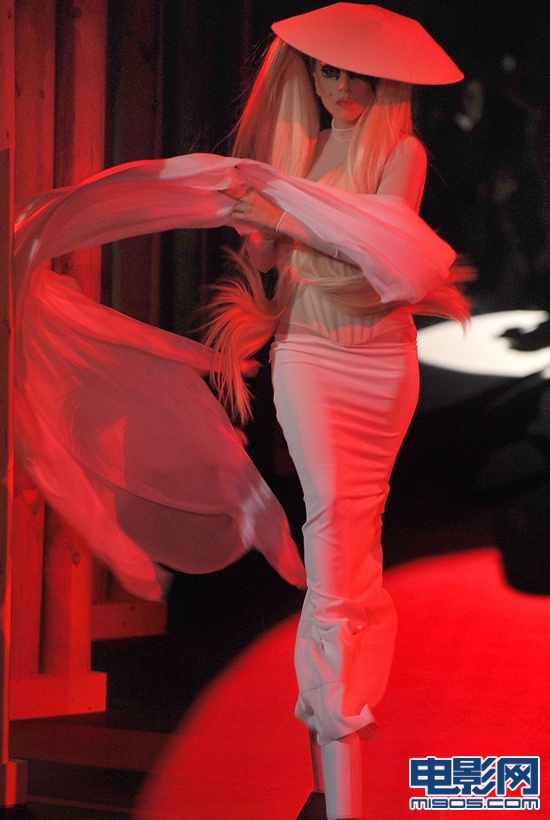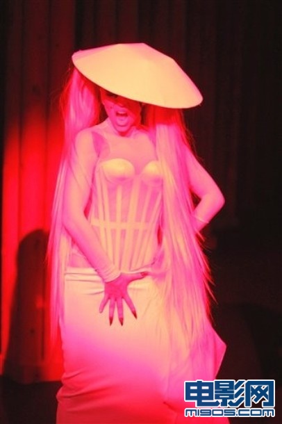 Lady GaGa透视连体裤惊艳走秀 被两男争相亲吻