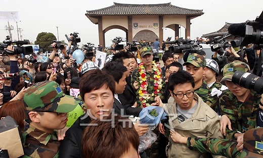 当天赵仁成退伍仪式的现场涌来了将近100名媒体人员以及400多名粉丝。更有日本粉丝在举行退伍仪式的2小时之前,在空军作战司令部门前高举应援牌,大声呼喊要见赵仁成。令人不得不感慨赵仁成人气丝毫不减。