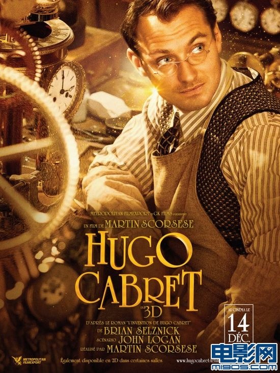 由马丁·斯科塞斯执导的首部3D大片《雨果·卡布里特》于当地时间11月18日发布了全套法版角色海报,五位主演阿沙·巴特菲尔德、科洛·莫瑞兹、本·金斯利、裘德·洛和萨莎·拜伦·科恩一一亮相,整体以复古的暖色调,魔幻色彩浓郁。