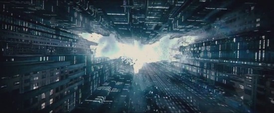 预告片开头,在一片蓝色的火焰中,片方华纳和传奇影业的标志显现出来,接下来便是不断崩塌的高楼大厦中不断升起的镜头中,字幕打出了“每个英雄都要经历一段旅程,每一个旅程都有一个终点”的字样。在不断闪回前两部的镜头中,第一部中连姆·尼森饰演的大反派忍者集团首领Ra's Al Ghul的声音响起:“如果你让自己超越凡人,坚守一个理想,那么你会完全改变,变成一个传说”。