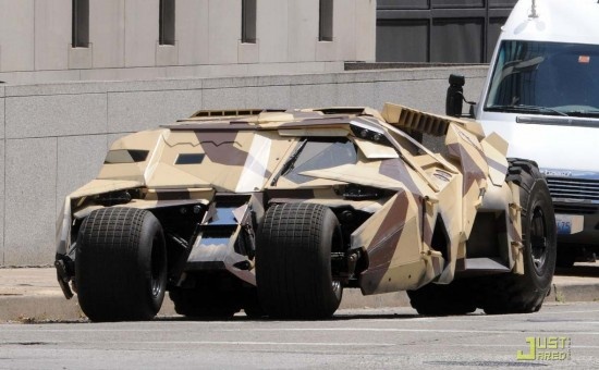 根据图片来看,汤姆·哈迪扮演的反派班恩不仅戴了一个怪里怪气的面具,还穿了一件皮袄,;同时蝙蝠侠的传奇战车也曝光了,战车变化最大的地方就在于,之前的战车是黑色的,这次曝光的则是黄绿迷彩颜色,蝙蝠侠是在玩拟态吗?从场景来看,班恩站在战车之上,这是否意味着会有二人在战车上的打斗,或者班恩偷了蝙蝠侠的战车?