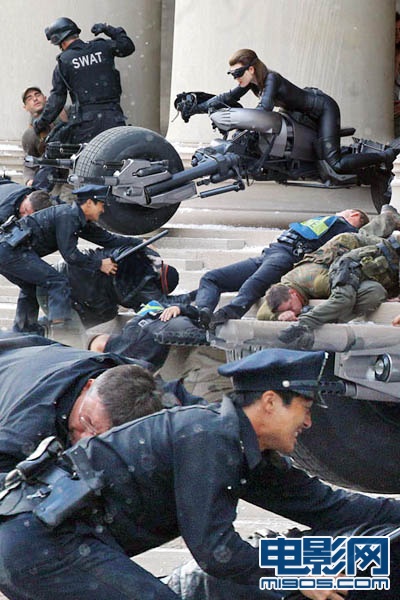 这部由克里斯托弗·诺兰执导的《蝙蝠侠前传3:黑暗骑士崛起》目前正在美国宾夕法尼亚州匹兹堡热拍中。近日不断流出的片场照可以依稀看到华丽的演员阵容,来自《盗梦空间》的几位主要演员汤姆·哈迪、玛丽昂·歌迪亚和约瑟夫·高登-莱维特也都已低调现身。该片是诺兰执导的《蝙蝠侠前传》三部曲的最后一部,在这部影片中,汤姆·哈迪饰演的大反派班恩、安妮·海瑟薇饰演的猫女将和克里斯蒂安·贝尔饰演的布鲁斯·韦恩展开恶战,将于2012年7月20日上映。