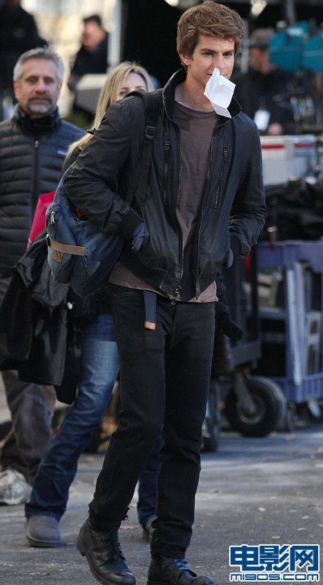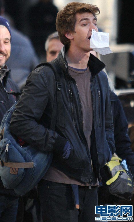 安德鲁·加菲尔德鼻子塞着纸巾十分好笑