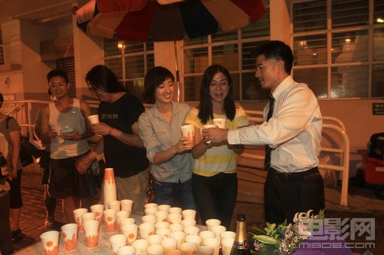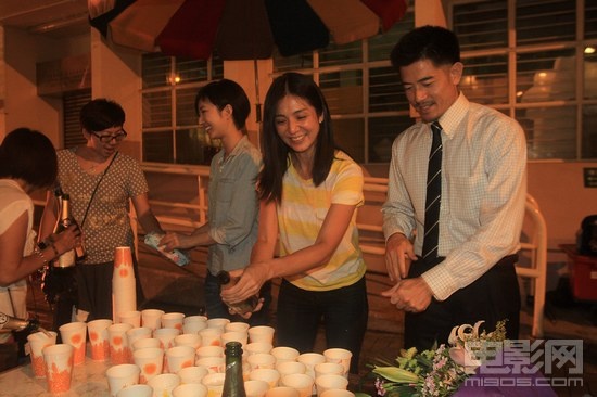 和小镁相比,郭富城就表现的更man一些,他开启香槟和导演及所有工作人员庆祝,更是顽皮的把香槟喷向在场围观群众,有群众表示,平常看城城在戏里面都是或斯文或野性,原来他有这么顽皮的一面,城城被观众问及拍摄情况,大声回答:“很顺利很开心!”