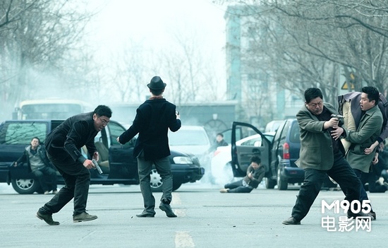 非但如此,杜琪峰在这场终极厮杀中对“战场”的选择也是颇费苦心,先是小学门口,再转移到马路,整个过程中观众几乎没有任何喘息的机会,就不断随着残酷暴虐的枪火一行到底。事实上,杜琪峰也绝不是为了显示自己场面调度的能力,而是为观众再现了:毒贩到底有多毒!