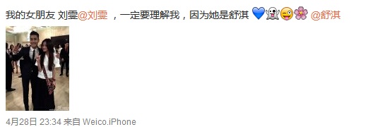 崔始源搂舒淇合照 喊话“女友”刘雯:要理解我