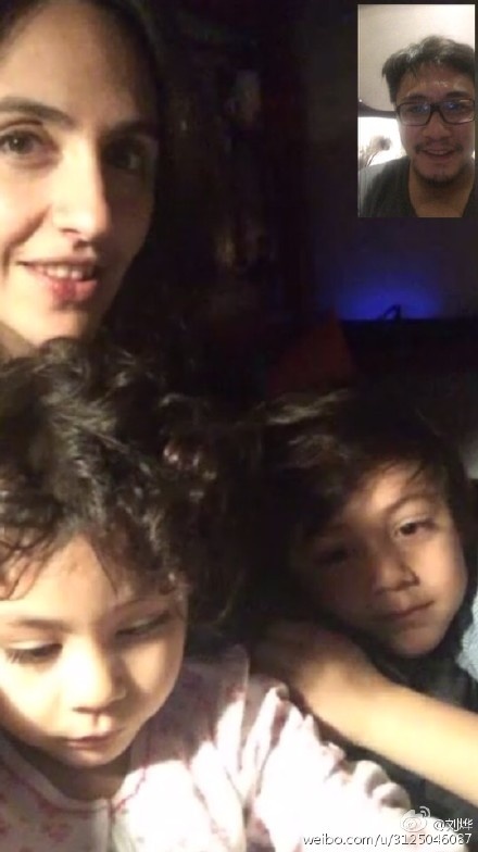 刘烨晒与爱妻视频聊天截图 感叹一家四口长得像