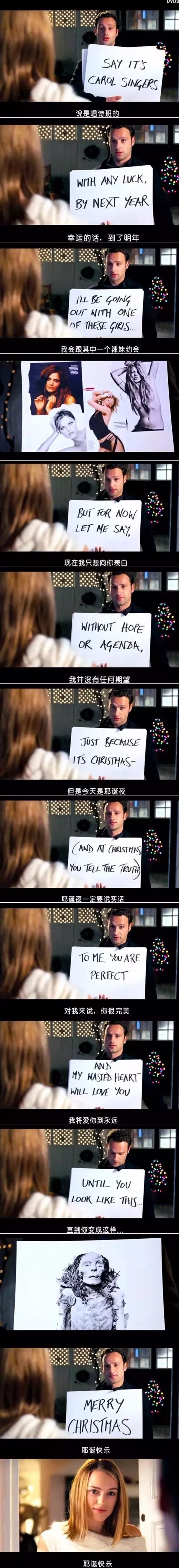凯拉·奈特莉饰演的朱丽叶与皮特幸福的步入了婚姻殿堂,但安德鲁·林肯饰演的伴郎马克却也对朱丽叶情有独钟。在圣诞节的夜晚,马克用无声的纸板写下满满温馨的表白,最后朱丽叶以轻轻一吻回应。虽然没有交代二人最终的走向,但马克觉得得到了朱丽叶一吻,已经够了。