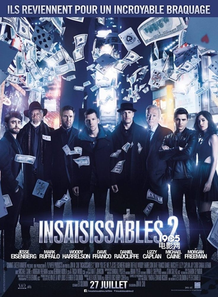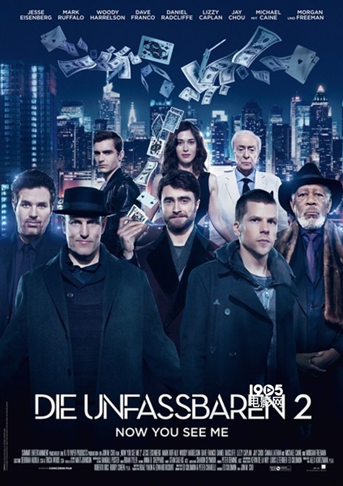 德国海报融合了纸币和纸牌两个元素,从丹尼尔·雷德克里夫手中飞出的纸牌最后竟与纸币串联在一起,两部电影的关系呼之欲出。2013年,《惊天魔盗团》狂揽全球3.5亿美元票房,成为当年的口碑之作和票房黑马。三年之后,承接上一部的精彩大冒险,这部续集带着原版人马和全新升级的故事、更加宏大的规模震撼归来。