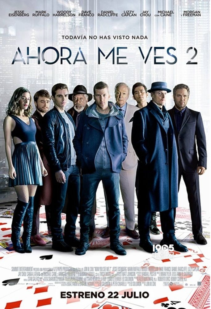 如果说上一集的重点是纸币,这一集的重点则是纸牌。西班牙的海报以魔术中最基本的道具——纸牌为重点,铺满地面的纸牌瞬间把电影的魔术感打造出来。据已上映地区的评价来看,《惊天魔盗团2》中四骑士围绕纸牌展开了一场精彩绝伦的表演,爽到翻嗨到爆的魔术戏份成功让观众的肾上腺素飙升。而至于简单的纸牌如何玩出不可思议的花样,就要等影片上映后再一一揭晓了。