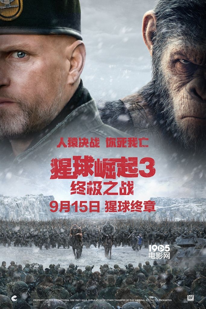 据悉,《猩球崛起3:终极一战》将于9月15日全国震撼公映,热血大片等你品鉴。