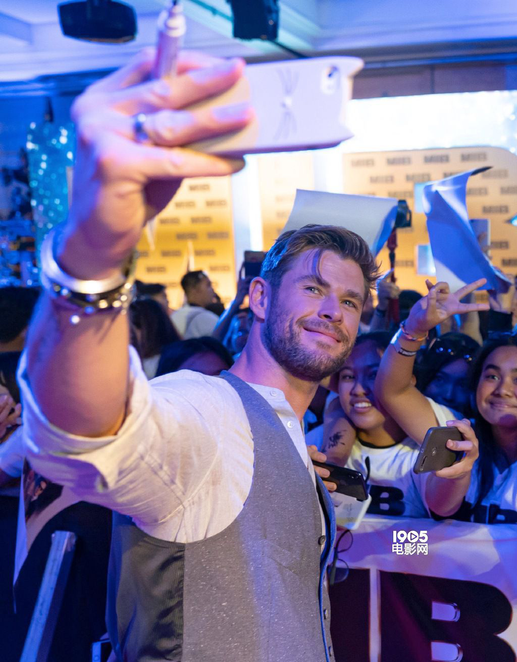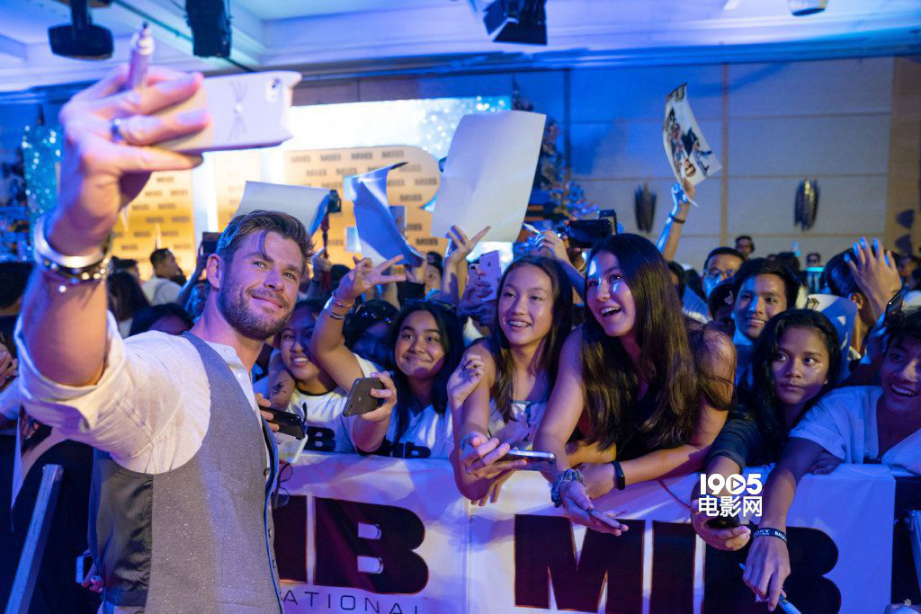 1905电影网讯 《黑衣人:全球追缉》全球宣传第一站昨日开启,“锤哥”克里斯·海姆斯沃斯现身巴厘岛宣传活动,与粉丝合影。