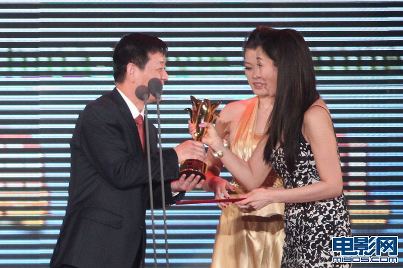 2011年5月5日晚,第11届数字电影百合奖颁奖现场,各项电影大奖最终花落各家。 图为:李乃文、孙敏上台领奖