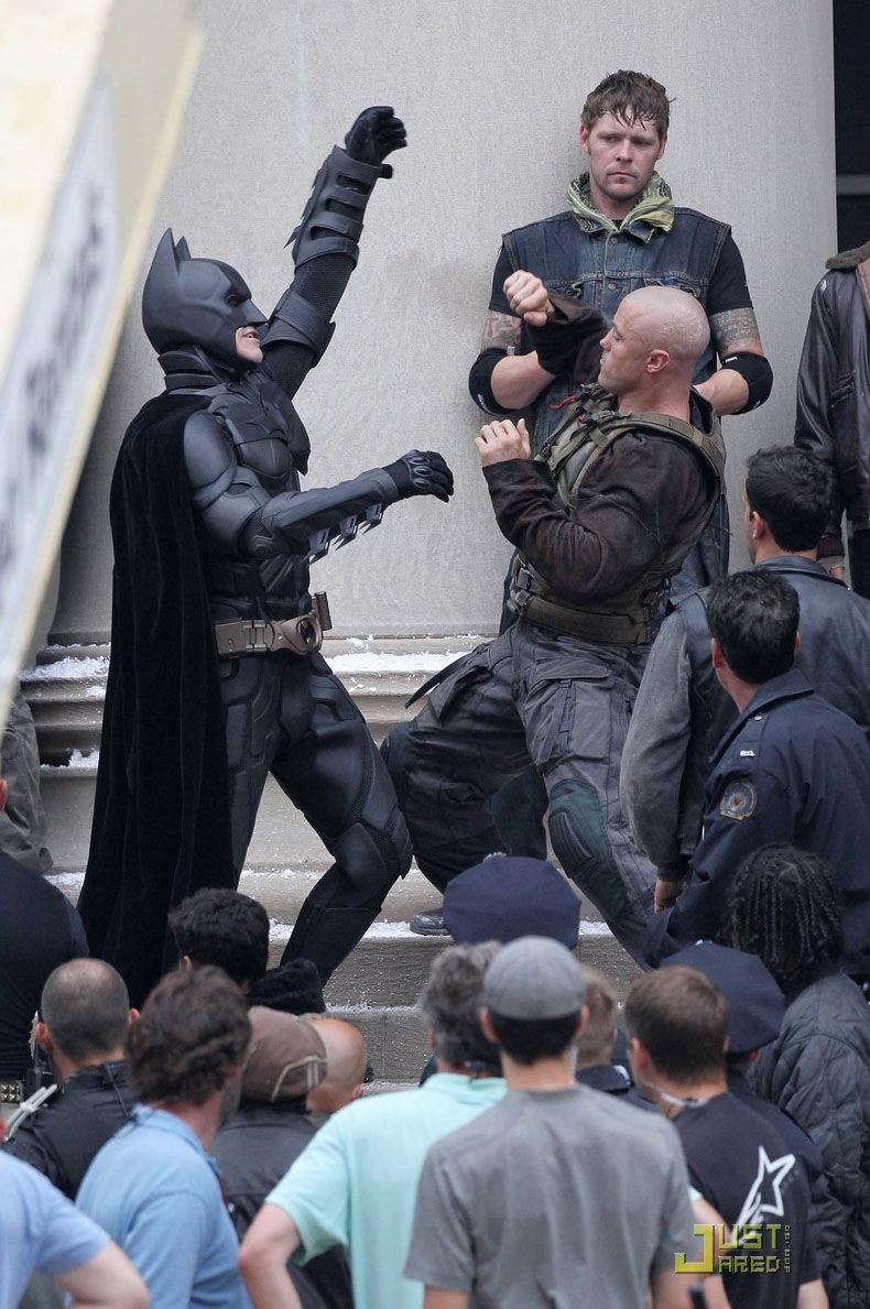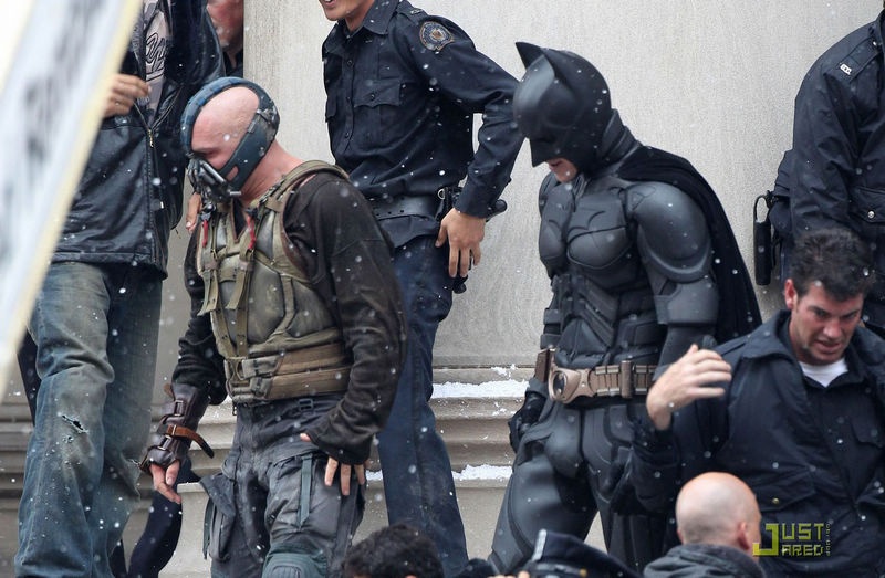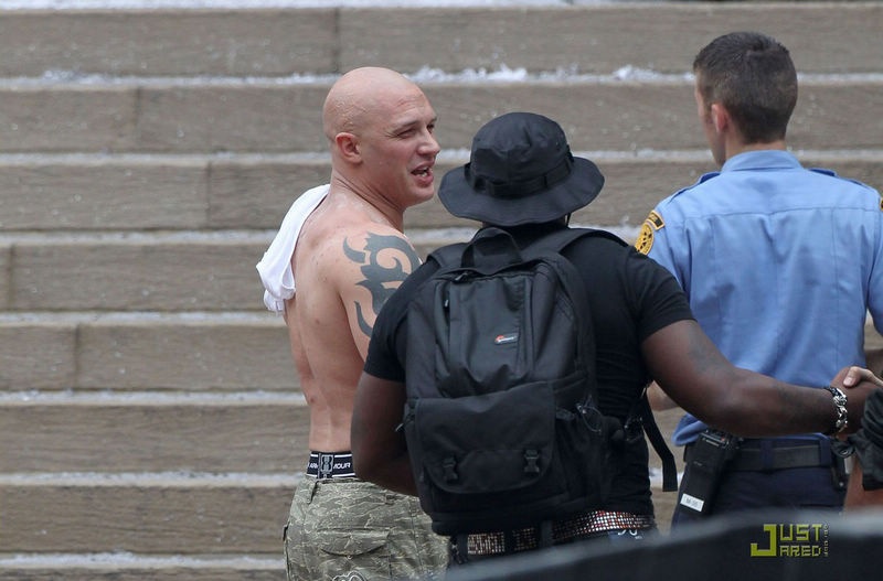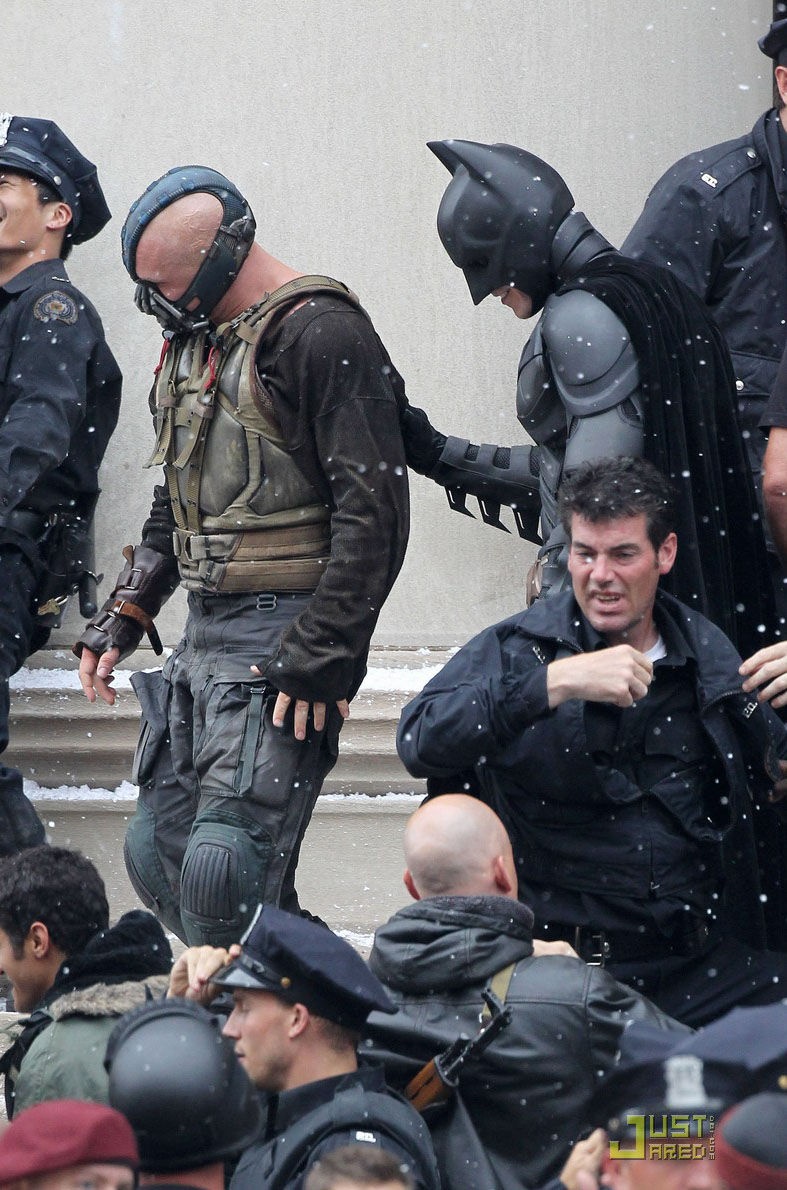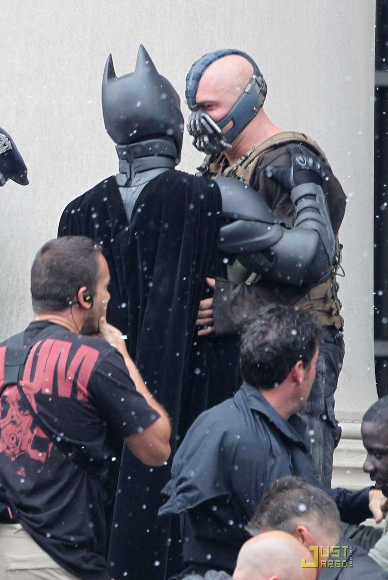 > 《黑暗骑士崛起》曝片场照 汤姆·哈迪赤膊上阵