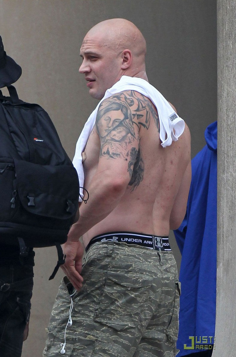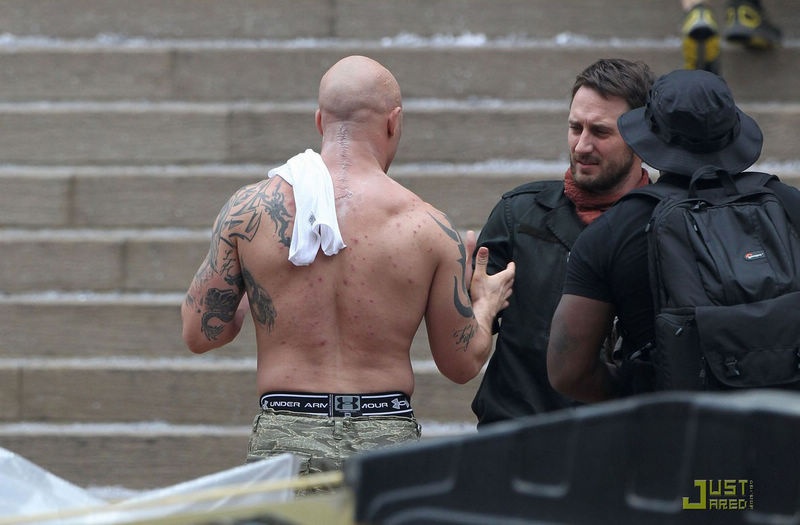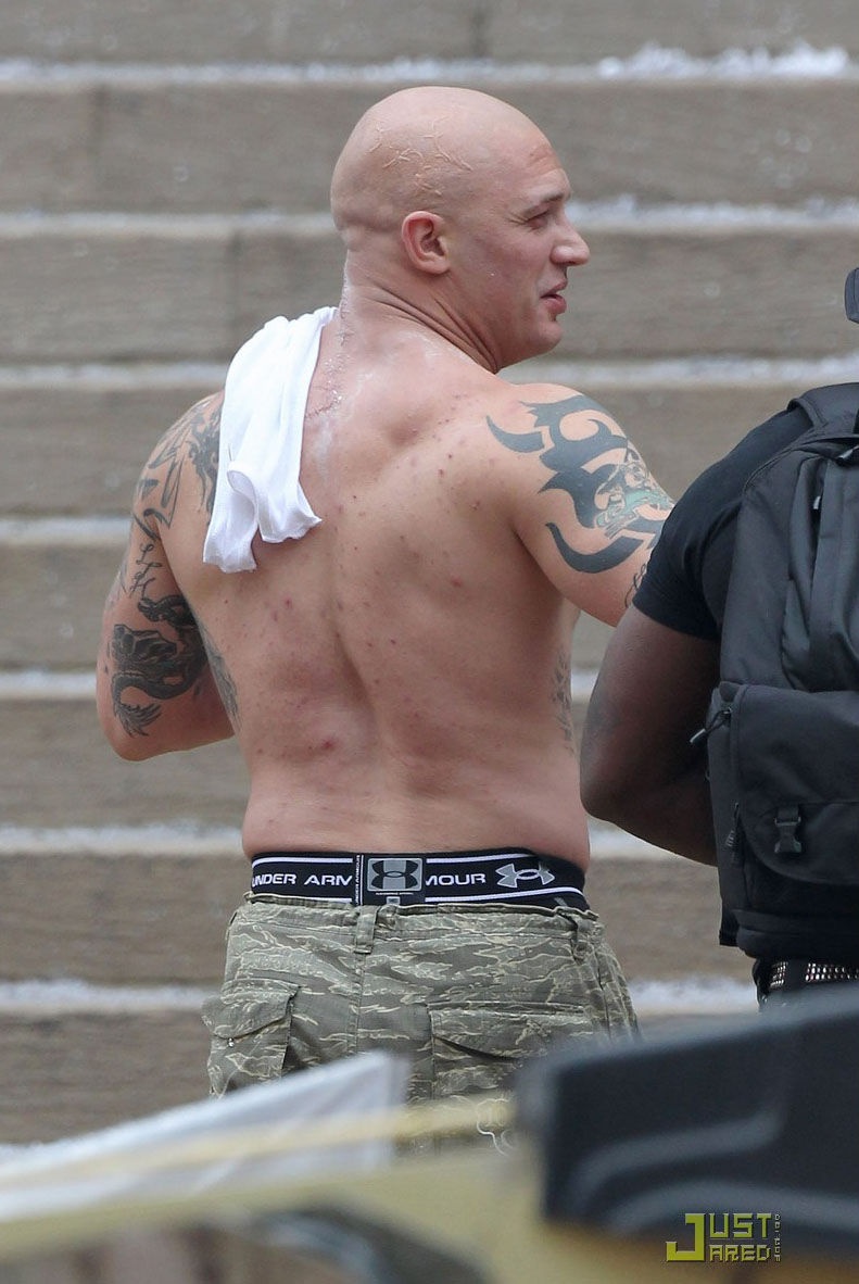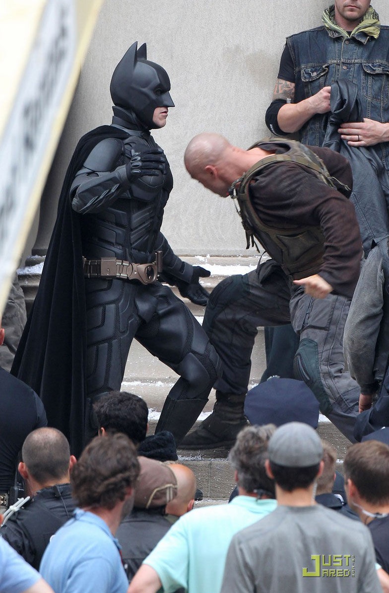 > 《黑暗骑士崛起》曝片场照 汤姆·哈迪赤膊上阵
