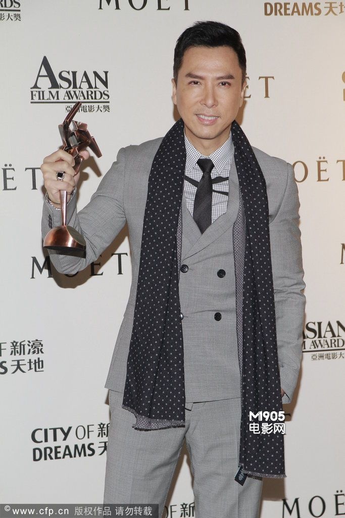 获颁亚洲男演员大奖的甄子丹坦言很开心,这几年的努力没有白费,希望未来继续挑战不同的角色,但没有固定的角色想演,主要都是看导演和对手。提到看好谁得金像奖影帝,甄子丹就表示其实都不重要,能入围能提名已经证明了自己的实力。获亚洲女演员大奖的刘嘉玲同为金像奖评审,她笑言这次特别难,因有