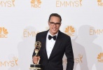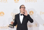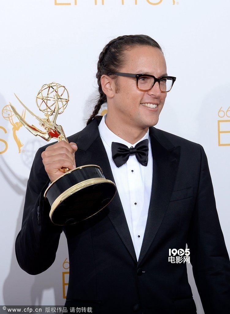 当地时间8月25日晚,第66届美国电视艾美奖颁奖典礼在洛杉矶举行。各个奖项逐一揭晓,获奖明星手持奖杯在后台与大家共同分享胜利的喜悦。图为: