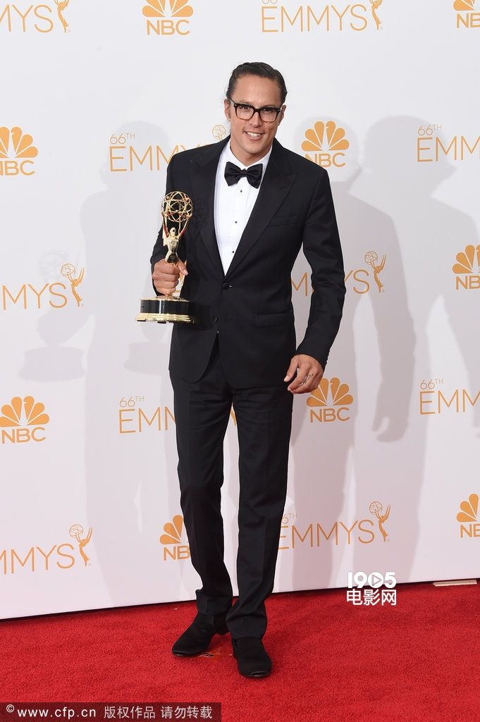 > 《真探》导演凯瑞亮相后台 手捧奖杯摆帅气POSE