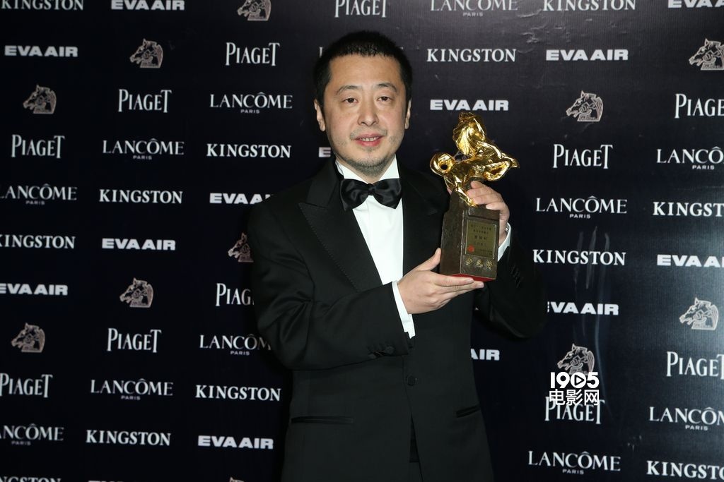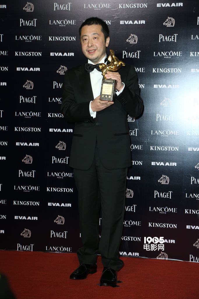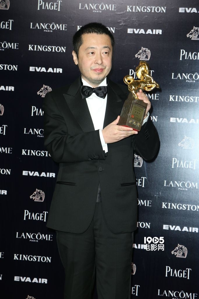 北京时间11月21日,第52届金马奖颁奖礼隆重举行,各个奖项逐一揭幕,获奖明星手持奖杯在后台与大家共同分享胜利的喜悦。图为:贾樟柯。