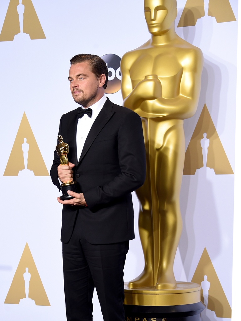 北京时间2月29日,第88届奥斯卡金像奖颁奖礼在好莱坞杜比剧院隆重举行,众多知名电影人齐聚一堂,奖项花落各家。图为:本届奥斯卡影帝莱昂纳多·迪卡普里奥 、影后布丽·拉尔森、最佳男配角得主马克·里朗斯和最佳女配角艾丽西亚·维坎德四人合影。