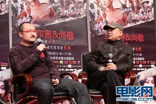 《刀见笑》曾在多伦多、釜山两大国际电影节上展映,该片搞笑的外表下面其实更多是触痛众人神经的黑色幽默,该片也因此被很多影评人誉为是“武侠版”的《低俗小说》。对于《刀见笑》“先锋武侠喜剧”的宣传名号,乌尔善则自嘲该片实为“先疯无侠喜剧”,“《刀见笑》里没有一位真正的侠客,它还能把很多人给看‘疯’了。”尚敬执导的首部商业电影《武林外传》日前票房突破2亿元大关,可谓票房口碑双丰收。北京大学生电影节一直鼎力支持年轻导演与学生的交流互动,此次邀请到乌尔善与尚敬前往北京师范大学与莘莘学子近距离交流,他们面对面探讨自己对华语喜剧电影的见解,并讲述他们在各自电影里对“喜剧”表达方式的探索与尝试。