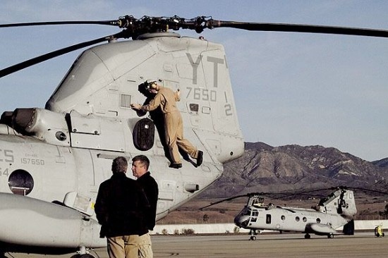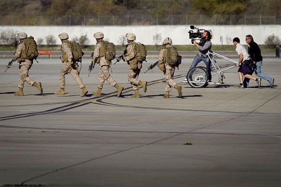 近日一组片场照也曝光于网络,照片中包括艾伦哈特在内的演员们在一个空旷的训练场,旁边则是军用飞机等真家伙,看起来似乎在接受训练,以求达到最真实的效果。为了呈现真实的战争场面,美军大力协助,派出驻守在加利福尼亚州的部队参与电影制作,还提供了包括V22鱼鹰式旋翼机、CH46海骑士运输直升机等各种装备,军事迷当可大饱眼福。