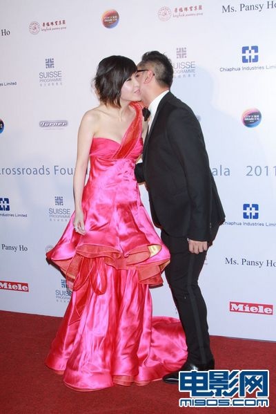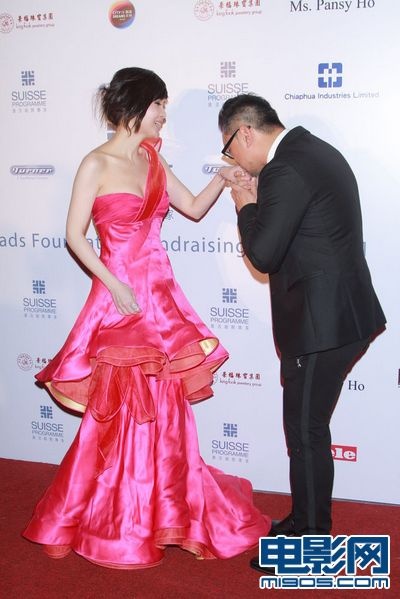周慧敏粉红长裙出席晚会 称其母腿受伤在家过节
