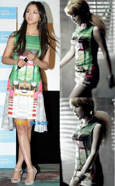 电影网讯(编译/常玮)5月25日,汤唯来到韩国首尔,以嘉宾的身份参加代言电子产品的发布会活动。 当天的活动现场,也播放了汤唯最新的广告视频,而汤唯也亲自演示了新产品的高级性能。然而汤唯当天身穿的绿色拼接短裙,是韩国人气组合2NE1成员朴春在前不久的MV《LONELY》中穿过的同款,只是在下摆部分稍有不同。这样的撞衫虽然稍显尴尬,不过并不影响汤唯在当天收获影迷的欢呼。