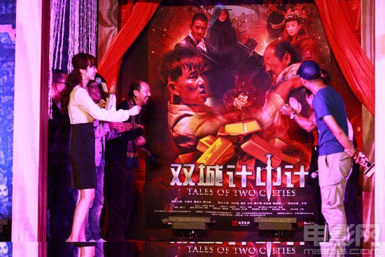 在发布会上,《双城计中计》的剧情海报揭开了神秘的面纱,既突出了人物,也体现了夺宝。据了解,影片中,任贤齐和腾格尔扮演了一对素有仇怨的冤家对头,二人在上海滩狭路相逢,一路斗智斗勇到西北的黄沙大漠,有多场精彩的对手戏。任贤齐机灵百变飞扬洒脱,腾格尔城府深沉老谋深算,二人为敌时斗智斗勇诡变百出让人防不胜防,联手时配合默契相得益彰,将敌人玩弄于股掌之间。