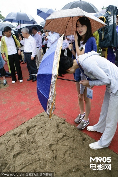 由于主席台上先是进行其他仪式,提前被邀请至台下的周冬雨等了十几分钟才被邀请上主席台,在这期间,她的一位随行工作人员对主办方颇有微词,认为安排不恰当,让周冬雨站台下冒雨等这么久,也容易引起市民拍照而引发混乱。