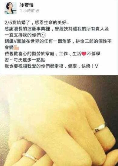 徐若瑄亲自公布婚讯 晒婚戒秀甜蜜将办两场喜宴