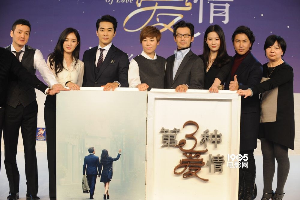 共21张1905电影网讯 1月8日,电影《第三种爱情》在北京举行发布会,并曝光了一款制作特辑,导演李宰汉携主演宋承宪、刘亦菲、欧弟、孟佳、赵一铭亮相,该片计划于今年春天上映。宋承宪在片中扮演一名“霸道总裁”,已经39岁的他表示自己年龄虽大,但也曾经年轻过,而且内心永远都是“小鲜肉”。