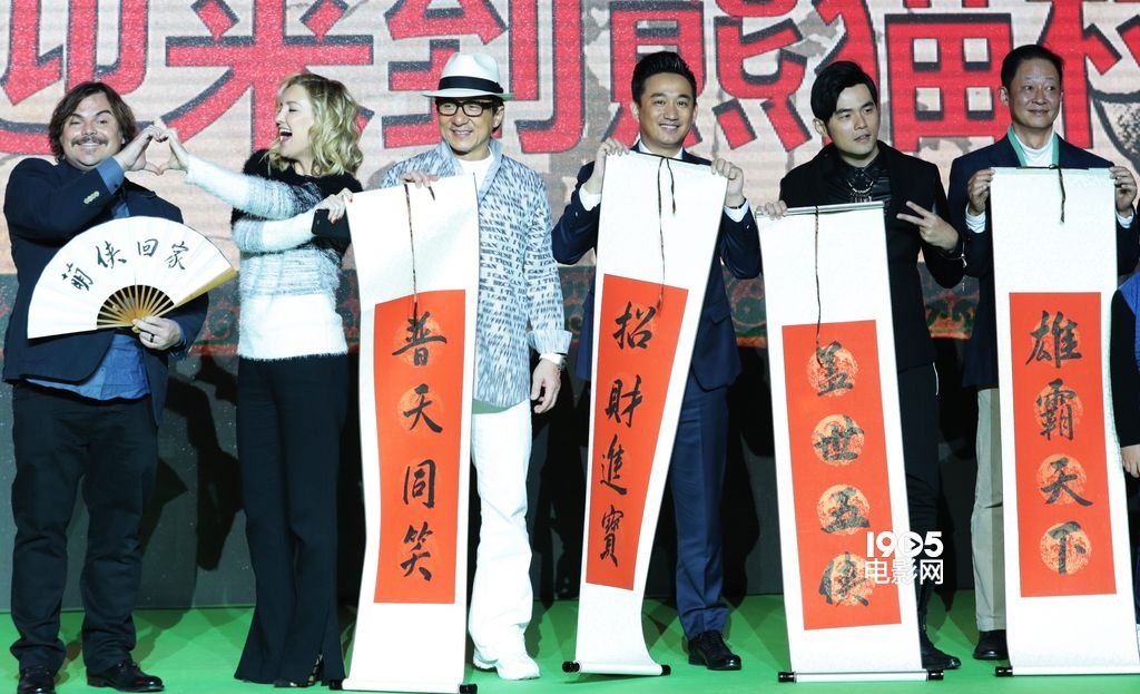 作为远道而来的贵客,“美国阿宝”及其女友也收到了颇具中国特色的礼物:一把写着“萌侠回家”的折扇。受东方文化“熏陶”多年的杰克·布莱克显然对于如何“正确使用”折扇驾轻就熟。现场,他大摆POSE,尽显“神龙大侠”风采。