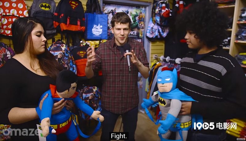 两位英雄亨利·卡维尔和本·阿弗莱克以各种搞怪的形式鼓励粉丝参与,然而反派角色也没闲着,深入到纽约中心城漫画店的杰西·艾森伯格也挑逗到此朝圣的漫画死忠选出心中支持的英雄。