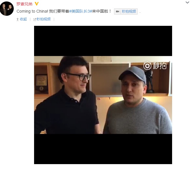 共89张1905电影网讯 近日,《美国队长3:英雄内战》导演罗素兄弟在网络上载一则视频,向粉丝透露两人将亮相4月举办的北京国际电影节,此外,他们还宣布了另一大惊喜,即“美国队长”克里斯·埃文斯、“猎鹰”安东尼·麦凯、“冬兵”塞巴斯蒂安·斯坦将出席该片于4月19日在北京举办的宣传活动。