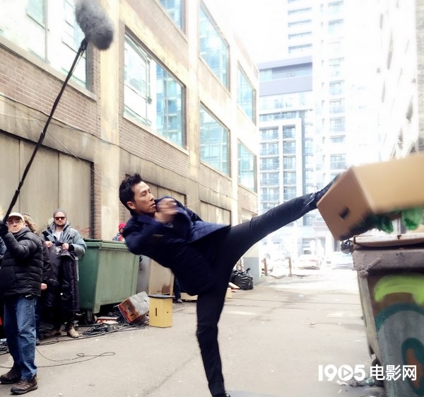 在多伦多街头,甄子丹面对镜头,大方比出“V”型手势,看上去心情不错。多伦多前几天在下大雪,目前天气依然寒冷,在曝光的照片中,工作人员都穿着厚羽绒服。甄子丹衣着轻薄,在多伦多的小巷,施展高抬腿侧踢,姿势帅气,态度专业。