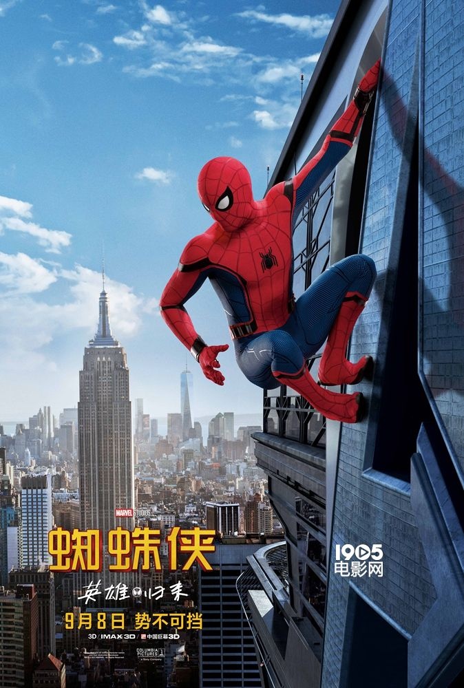 由乔·沃茨执导,汤姆·赫兰德、小罗伯特·唐尼、迈克尔·基顿、玛丽莎·托梅联袂出演的好莱坞科幻冒险动作巨制《蜘蛛侠:英雄归来》将于9月8日以3D、IMAX3D、中国巨幕3D制式在全国正式上映。