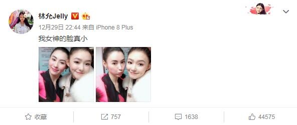 1905电影网讯 12月29日晚,林允发布一条微博,晒出了自己与张柏芝的合照,并写道:“我女神的脸真小”,引来网友不断转发。有网友称:“都小,超级美!!!”“我的两个女神同框了”