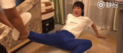 视频中杨紫被助理拽住腿向体重秤的方向拖行,但是顽强的杨紫一边全力抵抗一边喊道:“我不上体重”。就在助理把她拖到体重秤旁时,杨紫一把把体重秤推开随即逃跑,助理拎起体重秤在后面追逐,画面十分逗趣。