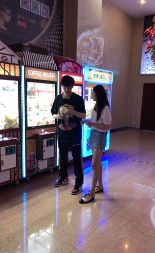 颖儿付辛博甜蜜约会夹娃娃 表情宠溺夫妻动作神同步