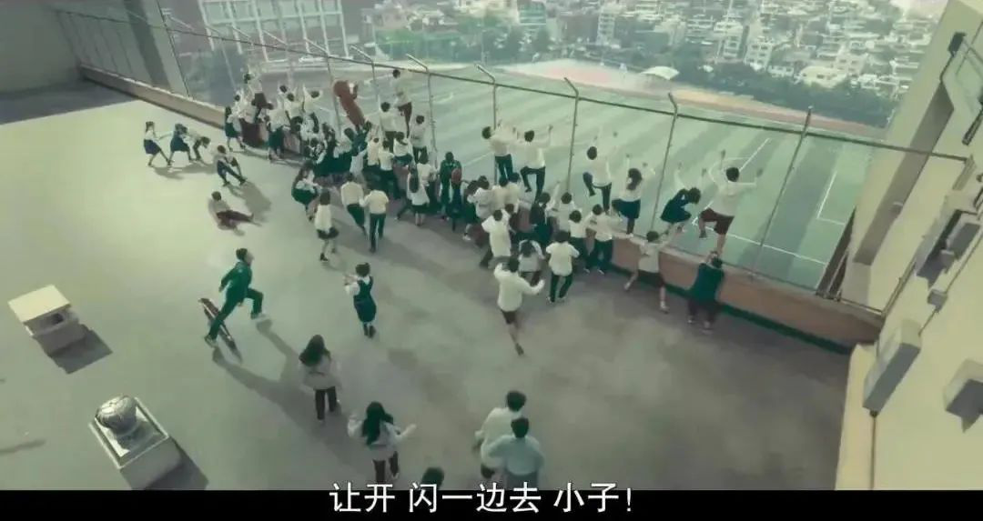 第一集里在楼下摆上蜡烛的浮夸表白,眼睁睁看着自己喜欢的女孩却无法开口的男生,盲目失控冲向楼顶的学生,其实都是对于在恋爱中疯狂又失去理智的年轻人的隐喻。