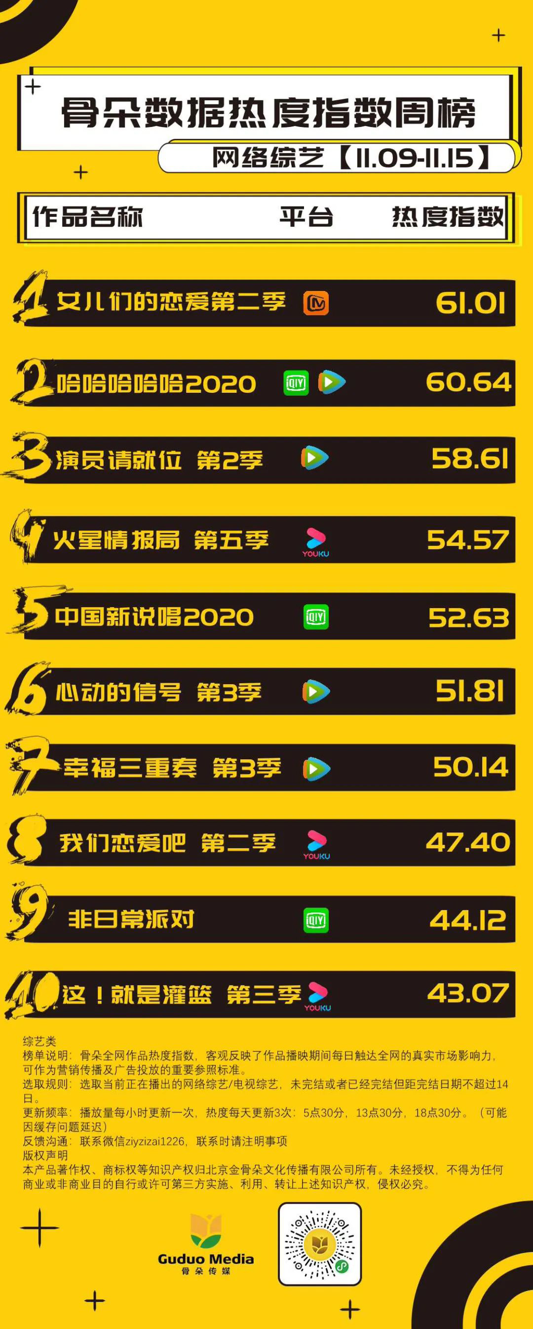 网综周榜丨《女儿们的恋爱 第三季》排名第一,《哈哈哈哈哈2020》位列第二